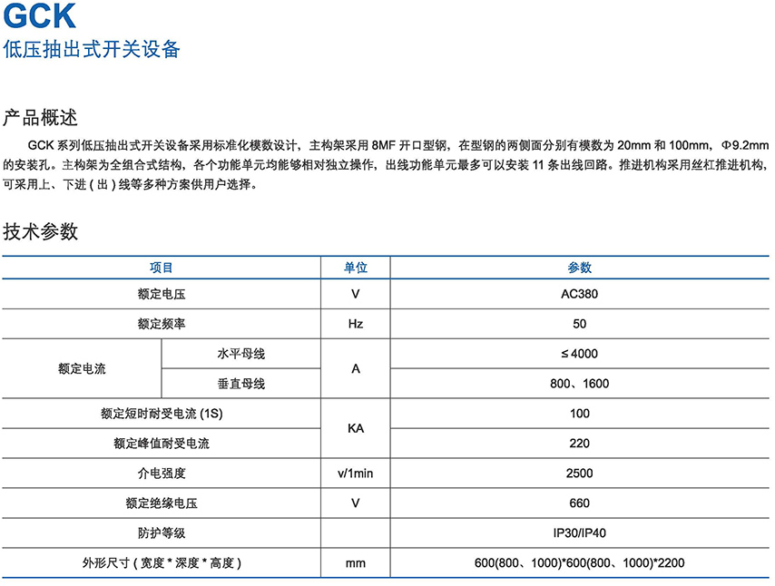 GCK低壓抽出式開關(guān)設(shè)備